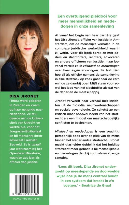 Misdaad en mededogen van officier van justitie Disa Jironet is een zeer urgent en persoonlijk boek over mededogen in het Nederlandse strafrecht.