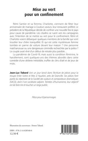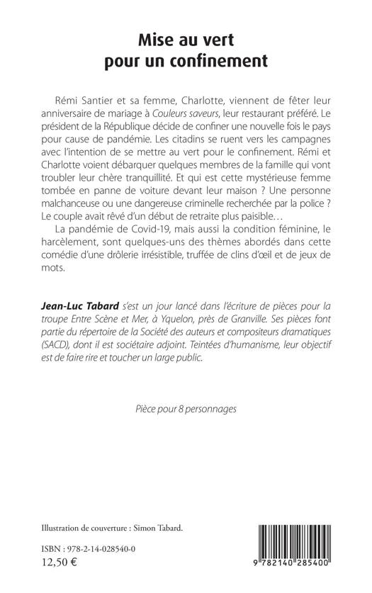 Rémi Santier et sa femme, Charlotte, viennent de fêter leur anniversaire de mariage à Couleurs saveurs, leur restaurant préféré. Le président de la République décide de confiner une nouvelle fois le pays pour cause de pandémie. Les citadins se ruent vers les campagnes avec l'intention de se mettre au vert pour le confinement. Rémi et Charlotte voient débarquer quelques membres de la famille qui vont troubler leur chère tranquillité. Et qui est cette mystérieuse femme tombée en panne de voiture devant leur maison ? Une personne malchanceuse ou une dangereuse criminelle recherchée par la police ? Le couple avait rêvé d'un début de retraite plus paisible...