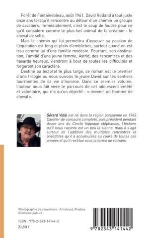 Forêt de Fontainebleau, août 1961. David Rolland a onze ans lorsqu'il rencontre un groupe de cavaliers. Immédiatement, c'est le coup de foudre pour le cheval de selle. Mais le chemin qui lui permettra d'assouvir sa passion de l'équitation est difficle, surtout lorsqu'on est issu comme lui d'une famille modeste. Pourtant, son obstination, l'amitié d'une jeune femme, Astrid, les rencontres et les hasards heureux, viendront à bout de toutes les difficultés et forgeront son caractère. Ce roman est le premier d'une trilogie où nous suivons le jeune David sur les sentiers tourmentés de sa vie d'homme.