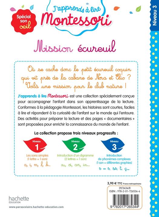 J’apprends à lire MONTESSORI est une collection spécialement conçue pour accompagner l’enfant dans son apprentissage de la lecture. Conformément à la pédagogie Montessori, les histoires sont courtes, faciles à lire et répondent à la curiosité de l’enfant sur le monde qui l’entoure. Des activités pour préparer la lecture et des pages « documentaires » sont proposées pour enrichir la connaissance du monde de l’enfant.