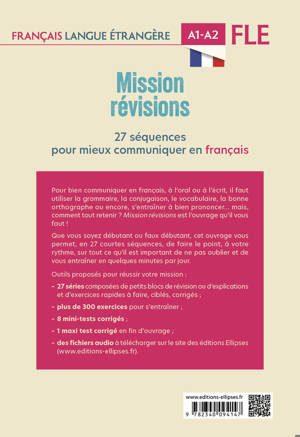 • 27 séquences thématiques, composées de petits blocs de révision ou d’explication et d’exercices ciblés, abordant à la fois du vocabulaire, de la grammaire, de la conjugaison, de l’orthographe, des éléments de communication et de prononciation
