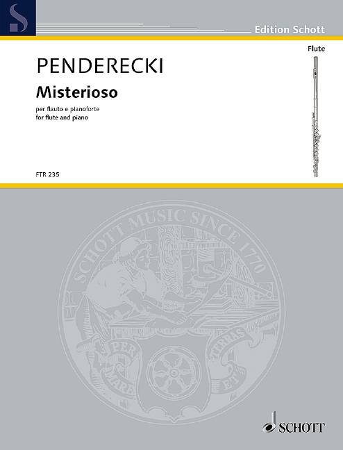 Krzysztof Penderecki schrieb das Misterioso für Flöte und Klavier ursprünglich als Beitrag für die Flötenschule Skoła na flet von Eugeniusz Towarnicki. Diese wurde 1963 publiziert und gilt als erste Flötenschule in Polen, die sich als Standardwerk etablieren konnte. Für die vorliegende Neuausgabe des Misterioso wurde ein anspruchsvoller neuer Notensatz erstellt. Schwierigkeitsgrad: 4