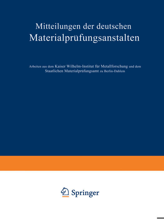 Sonderheft IX: Arbeiten Aus Dem Kaiser Wilhelm-Institut Für Metallforschung Und Dem Staatlichen Materialprüfungsamt Zu Berlin-Dahlem