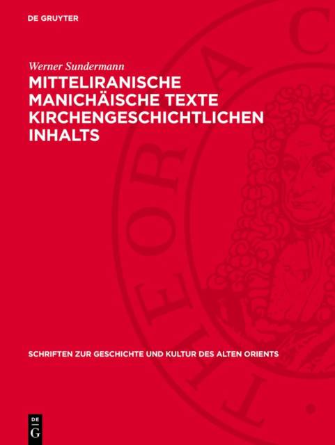 Mitteliranische Manichäische Texte Kirchengeschichtlichen Inhalts