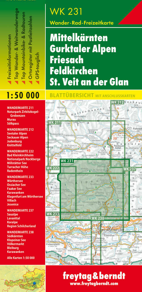 De wandelkaarten van Freytag & Berndt zijn de perfecte metgezel voor wandelen, bergbeklimmen en langlaufen, door middel van gedetailleerde digitale kaarten en specifieke criteria. Ze worden regelmatig bijgewerkt en bevatten up-to-date informatie over wandelpaden, fietspaden en mountainbikeroutes, hutten, natuurlijke monumenten, culturele bezienswaardigheden en recreatieve voorzieningen.
