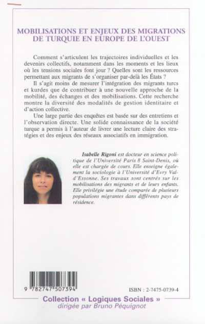 Il s'agit moins de mesurer l'intégration des migrants turcs et kurdes que de contribuer à une nouvelle approche de la mobilité, des échanges et des mobilisations. Cette recherche montre la diversité des modalités de gestion identitaire et d'action collective.