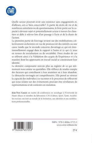Quelle saveur pourrait avoir une existence sans engagements et, d'ailleurs, est-ce bien concevable ? À partir de récits de vie et de nombreux entretiens ou de questionnaires, le livre porte sur la capacité à devenir sujet et potentiellement acteur à travers les chantiers et défis à relever lors d'un passage à l'acte et de la durée de l'action.