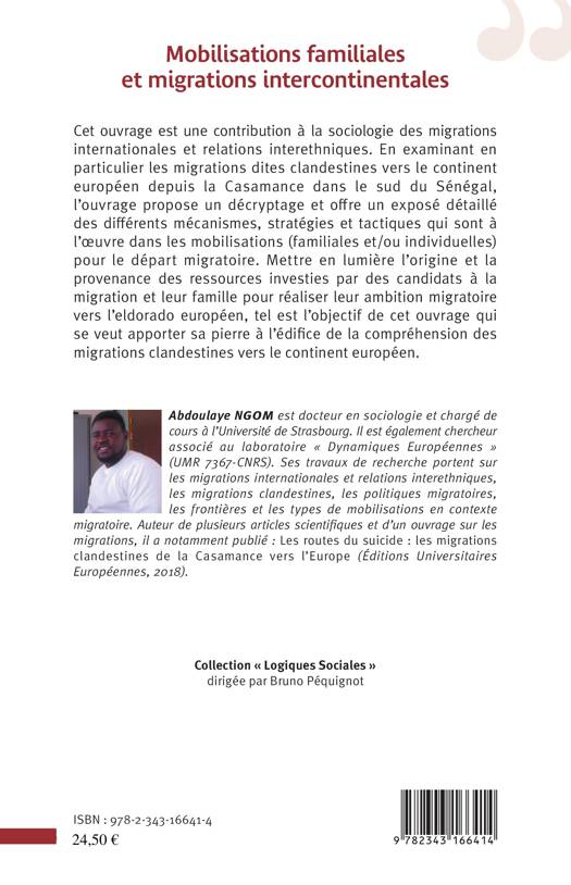 Cet ouvrage est une contribution à la sociologie des migrations internationales et relations interethniques. En examinant en particulier les migrations dites clandestines vers le continent européen depuis la Casamance dans le sud du Sénégal, l'ouvrage propose un décryptage et un exposé détaillé des différrents mécanismes, stratégies et tactiques qui sont à l'oeuvre dans les mobilisations (familiales et/ou individuelles) pour le départ migratoire.