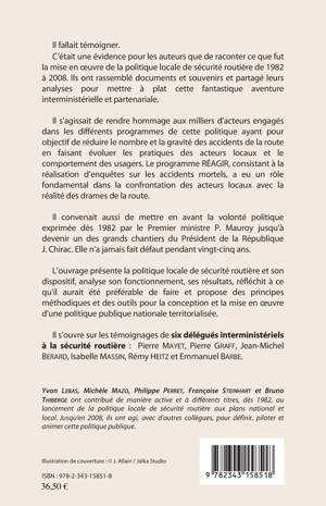 Cet ouvrage présente la politique locale de sécurité routière et son dispositif, analyse son fonctionnement, ses résultats, et propose des principes méthodiques et des outils pour la conception et la mise en oeuvre d'une politique publique nationale territorialisée. Il s'ouvre sur les témoignages de six délégués interministériels à la sécurité routière.