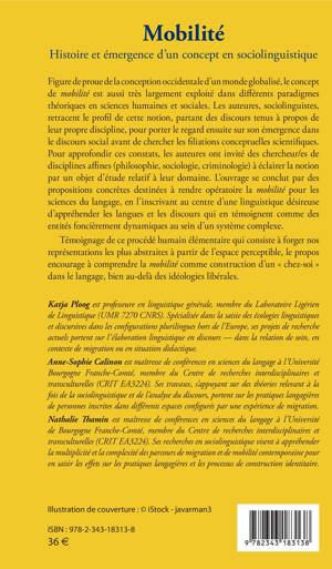 Figure de proue de la conception occidentale d'un monde globalisé, le concept de mobilité est aussi très largement exploité dans différents paradigmes théoriques en sciences humaines et sociales. Les auteures, sociolinguistes, tracent le profil de cette notion. Partant des discours tenus à propos de leur propre discipline, elles portent leur regard sur son émergence dans le discours social avant de chercher ses filiations conceptuelles scientifiques. Pour approfondir leurs constats, elles ont invité des chercheur/es de disciplines affines à éclairer la notion par un objet d'étude relatif à leur domaine. L'ouvrage se conclut par des propositions concrètes destinées à rendre opératoire la mobilité pour les sciences du langage, en l'inscrivant au centre d'une linguistique désireuse d'appréhender les langues et les discours comme des entités foncièrement dynamiques au sein d'un système complexe.