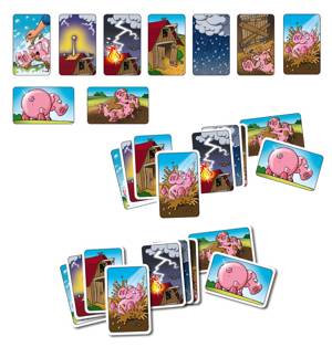 In 'Moddervarkens' probeert iedere speler zijn varkens te laten spelen in de modder om ze lekker vies te maken. Maar pas op, want je tegenstanders zullen alles in het werk stellen om jouw varkens weer schoon te wassen. Een stal komt dus goed van pas, want een dak biedt sowieso bescherming tegen regenkaarten. En als je de deur dan ook nog eens dicht laat timmeren, dan kan geen boer binnenkomen om jouw varkens schoon te boenen. De speler die uiteindelijk alleen maar moddervarkens voor zich op tafel heeft liggen, wint het spel! Dus ga dat varkentje van je tegenstanders maar eens wassen!