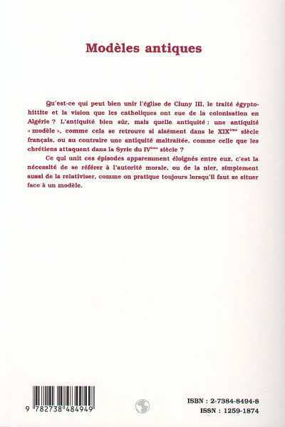 Qu'est-ce qui peut bien unir l'église de Cluny III, le traité égypto-hittite et la vision que les catholiques ont eue de la colonisation en Algérie ? L'antiquité bien sûr, mais quelle antiquité : une antiquité " modèle ", comme cela se retrouve si aisément dans le XIXème siècle français, ou au contraire une antiquité maltraitée, comme celle que les chrétiens attaquent dans la Syrie du IVe siècle ?