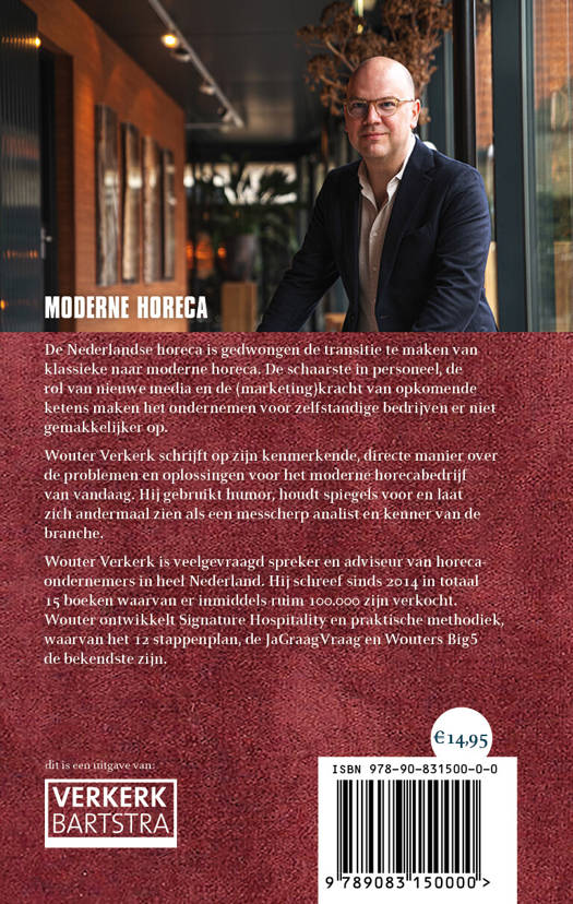 De Nederlandse horeca is gedwongen de transitie te maken van klassieke naar moderne horeca. De schaarste in personeel, de rol van nieuwe media en de (marketing)kracht van opkomende ketens maken het ondernemen voor zelfstandige bedrijven er niet gemakkelijker op. Wouter Verkerk schrijft op zijn kenmerkende manier over de problemen en oplossingen voor het moderne horecabedrijf van vandaag. Hij gebruikt humor, houdt spiegels voor en laat zich andermaal zien messcherp analist en kenner van de branche. Wouter Verkerk is veelgevraagds spreker en adviseur van horecaondernemers in heel Nederland. Hij schreef sinds 2014 in totaal 15 boeken waarvan er inmiddels ruim 100.000 zijn verkocht. Wouter ontwikkelt Signature Hospitality en praktische methodiek, waarvan het 12 stappenplan, de JaGraagVraag en Wouters Big5 de bekendste zijn.