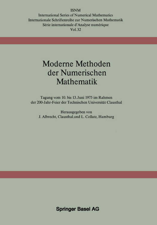 Der vorliegende Band gibt im wesentlichen Vortrage einer Tagung Modeme Methoden der Numerischen Mathematik wieder, die yom 10. bis 13.Juni 1975 im Rahmen der 200-Jahr-Feier der Technischen Universitat Clausthal stattfand und die durch verschiedene Beispiele sowohl Forschungsschwer- punkte als auch Anwendungen in anderen Wissenschaften zeigen sollte. Folgende Gebiete kamen dabei zur Sprache: Eigenwertaufgaben, Iterationen mit expandierenden und mit monotonen Operatoren, nichtlineare Schwin- gungen, Approximation, Interpolation und Quadratur, Ausgleichungen, Opti- mierung, optimale Steuerung, Diskretisierungsverfahren bei Anfangs- und Randwertaufgaben, schnelle Fourier-Transformationen, Diffusionsgleichun- gen in biologischen Modellen und Identifizierungsprobleme. Der Deutschen Forschungsgemeinschaft sei auch an dieser Stelle fUr die Forderung der Tagung gedankt; dem Birkhauser Verlag gilt der Dank fUr die Herausgabe dieses Bandes und fUr seine - wie stets -gute Ausstattung. L. COLLATZ, J. ALBRECHT INHALTSVERZEICHNIS J. ALBRECHT: Bemerkungen zur Newton-Iteration fUr A1I2 und A-I 9 P.M. ANSELONE: Nonlinear operator Approximation. . . . . . . . . . . . . . . . . . . . . . . 17 . . . . . . . . ERICH BOHL: Zur Anwendung von Differenzenschemen mit symmetrischen Formeln bei Randwertaufgaben ......................................... 25 HELMUT BRASS: Quadraturverfahren vom Gregoryschen Typ . . . . . . . . . . . . . . . . . 49 . . . . . . HAROLD D. EIDSON, LARRY L. SCHUMAKER: Spline solution of linear initial-and boundary-value problems ........ 67 ILIO GALLIGANI: Identification problems in electrocardiology . . . . . . . . . . . . . . . . . . 81 . . . . . . FRIEDRICH GOERISCH: Ober eine Methode zum Vergleich von Schranken fUr Eigenwerte ..... 97 PETER HENRICI: Einige Anwendungen der schnellen Fouriertransformation . . . . . . .. . . . III GUNTER MEINARDUS: Algebraische Formulierung von Spline-Interpolation en . . . . . . . . .. . . . 125 . P. SPELLUCCI: Algorithms for rational discrete least aquares approximation part I: Unconstrained optimization. . . . . . . . . . . . . . . . . . . . . . . . .. . . 139 . . . . . . . . . H. WERNER: Einige Beispiele kombinatorischer Aufgabenstellungen in den Geistes- wissenschaften .. . . . . . . . . . . . . . . . . . . . . . . . . . . . . . .. . . 159 . . . . . . . . . . . . .