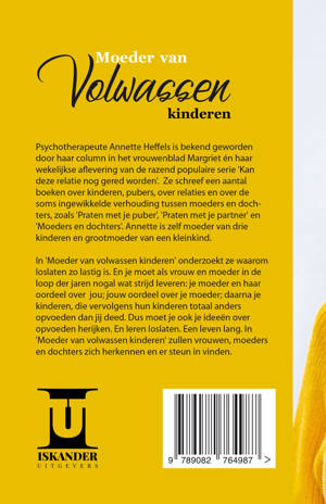 Psychotherapeute Annette Heffels is bekend geworden door haar column in het vrouwenblad Margriet én haar wekelijkse aflevering van de razend populaire serie 'Kan deze relatie nog gered worden'. Ze schreef een aantal boeken over kinderen, pubers, over relaties en over de soms ingewikkelde verhouding tussen moeders en dochters, zoals 'Praten met je puber', 'Praten met je partner' en 'Moeders en dochters'. Annette is zelf moeder van drie kinderen en grootmoeder van een kleinkind. In 'Moeder van volwassen kinderen' onderzoekt ze waarom loslaten zo lastig is. En je moet als vrouw en moeder in de loop der jaren nogal wat strijd leveren: je moeder en haar oordeel over jou; jouw oordeel over je moeder; daarna je kinderen, die vervolgens hun kinderen totaal anders opvoeden dan jij deed. Dus moet je ook je ideeën over opvoeden herijken. En leren loslaten. Een leven lang. In 'Moeder van volwassen kinderen' zullen vrouwen, moeders en dochters zich herkennen en er steun in vinden.