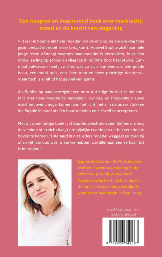 Met dit openhartige boek laat Sophie Zeestraten zien dat ieder mens de veerkracht in zich draagt om pijnlijke ervaringen uit het verleden te boven te komen. 'Uiteraard is niet ieders moeder weggegaan toen hij of zij vijf jaar oud was, maar we hebben wél allemaal een verhaal. Dit is het mijne.'
