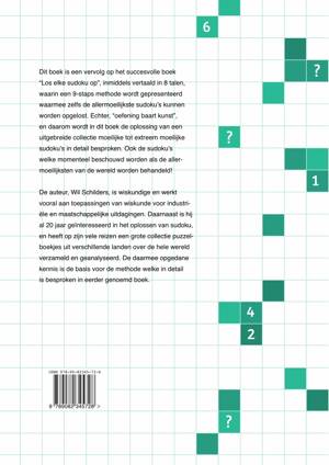 Dit boek is een vervolg op het succesvolle boek “Los elke sudoku op”, inmiddels vertaald in 8 talen, waarin een 9-staps methode wordt gepresenteerd waarmee zelfs de allermoeilijkste sudoku’s kunnen worden opgelost. Echter, “oefening baart kunst”, en daarom wordt in dit boek de oplossing van een uitgebreide collectie moeilijke tot extreem moeilijke sudoku’s in detail besproken. Ook de sudoku’s welke momenteel beschouwd worden als de allermoeilijksten van de wereld worden behandeld!