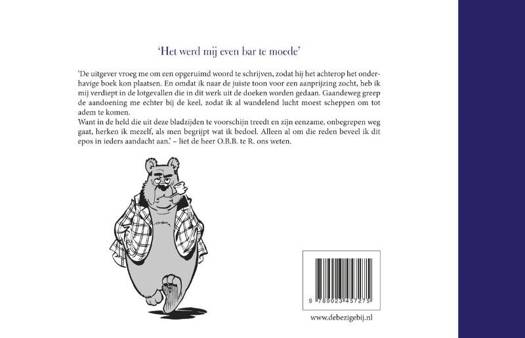 `De uitgever vroeg me om een opgeruimd woord te schrijven, zodat hij het achterop het onderhavige boek kon plaatsen. En omdat ik naar de juiste toon voor een aanprijzing zocht, heb ik mij verdiept in de lotgevallen die in dit werk uit de doeken worden gedaan. Gaandeweg greep de aandoening me echter bij de keel, zodat ik al wandelend lucht moest scheppen om tot adem te komen. Want in de held die uit deze bladzijden te voorschijn treedt en zijn eenzame, onbegrepen weg gaat, herken ik mezelf, als men begrijpt wat ik bedoel. Alleen al om die reden beveel ik dit epos in ieders aandacht aan. liet de heer O.B.B. te R. ons weten.