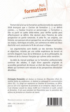 Partant de la loi sur la formation professionnelle de septembre 2018 énonçant que L'action de formation (...) se définit comme..., l'auteur incarne un personnage: Formation . Elle va partir en quête d'elle-même, pour vérifier qu'elle peut effectivement se définir. Elle devient alors l'héroïne de cette prospection en partie romancée. A cette fin, ses origines, son histoire, son parcours mis en perspective, ses artisans et partisans, ses enjeux, techniques et outils, son commerce et même ses lieux d'activité vont construire le fil de cet essai critique. Les argumentaires sont établis sur des données factuelles et objectives, éclairés par une solide expérience de terrain et enrichis d'apports issus de la littérature ou de la philosophie, du cinéma et de la chanson française qui rythme cette narration. Au-delà du manuel pratique sur la formation professionnelle continue des adultes, il s'agit d'une approche originale et accessible permettant de dresser un état des lieux exhaustif. Les débats qui l'animent sont retracés et les perspectives d'évolution détaillées.
