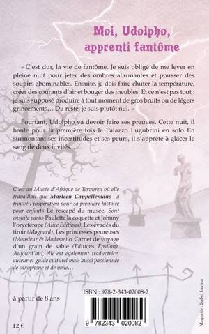 "C'est dur, la vie de fantôme. Je suis obligé de me lever en pleine nuit pour jeter des ombres alarmantes et pousser des soupirs abominables. Ensuite, je dois faire chuter la température, créer des courants d'air et bouger des meubles. Du reste, je suis plutôt nul." Pourtant, Udolpho va devoir faire ses preuves. Cette nuit, il hante pour la première fois le Palazzo Lugubrini en solo. En surmontant ses incertitudes et ses peurs, il s'apprête à glacer le sang de deux invités... À partir de 8 ans