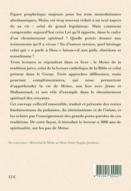 Figure prophétique majeure pour les trois monothéismes abrahamiques, Moïse est trop souvent réduit à un seul aspect de sa vie : celui de grand législateur. Mais comment comprendre aujourd’hui cette Loi qu’il apporte, dans le cadre d’un cheminement spirituel ? Quelle portée donner aux événements qu’il a vécus ? En d’autres termes, quel héritage celui qui « a parlé à Dieu » laissa-t-il aux juifs, chrétiens et musulmans ? Trois lectures se répondent dans ce livre : le Moïse de la tradition juive, celui de la lecture catholique de la Bible et celui présent dans le Coran. Trois approches différentes, mais pourtant complémentaires, qui nous permettent d’appréhender la vie de Moïse, son lien avec Jésus et Muḥammad, et son rôle d’exemple dans le cheminement spirituel des croyants...