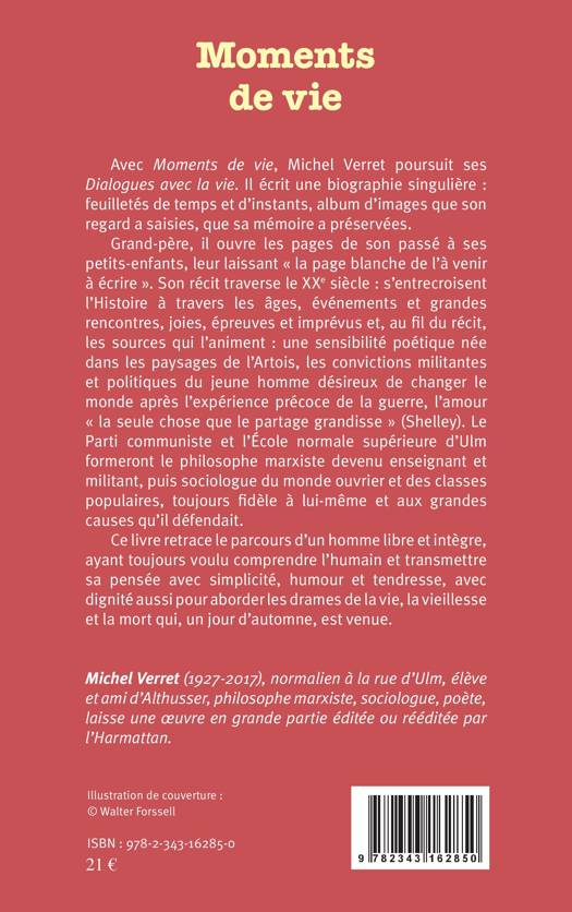 Avec cet ouvrage, Michel Verret poursuit ses Dialogues avec la vie. Sa biographie singulière ouvre les pages de son passé à ses petits-enfants, leur laissant « la page blanche de l'à venir à écrire ». Son récit traverse le XXe siècle et met au jour les sources qui l'animent : une sensibilité poétique née en Artois, les convictions militantes et politiques du jeune homme désireux de changer le monde après l'expérience de la guerre, l'amour « la seule chose que le partage grandisse » (Shelley). Le Parti communiste et l'Ecole normale supérieure formeront le philosophe marxiste devenu enseignant et militant, puis sociologue du monde ouvrier.