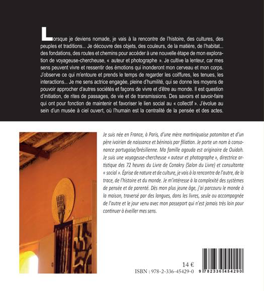 Lorsque je deviens nomade, je vais à la rencontre de l’histoire, des cultures, des peuples et traditions... Je découvre des objets, des couleurs, de la matière, de l’habitat... des fondations, des routes et chemins pour accéder à une nouvelle étape de mon exploration de voyageuse-chercheuse, « auteur et photographe ». Je cultive la lenteur, car mes sens peuvent vivre et ressentir des émotions qui inonderont mon cerveau et mon corps. J’observe ce qui m’entoure et prends le temps de regarder les coiffures, les tenues, les interactions... Je me sens actrice engagée, pleine d’humilité, qui se donne les moyens de pouvoir approcher d’autres sociétés et façons de vivre et d’être au monde. Il est question d’initiation, de rites de passages, de vie et de transmissions. Des savoirs et savoir-faire qui ont pour fonction de maintenir et favoriser le lien social au « collectif ». J’évolue au sein d’un musée à ciel ouvert, où l’humain est la centralité de la pensée et des actes.