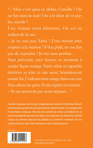 Camille n'a pas pu cacher plus longtemps ses notes en chute libre. Elle est convoquée au lycée avec ses parents et le verdict tombe : un changement d'orientation s'impose. Elle est alors privée de sortie, de téléphone, et surtout empêchée de retrouver Yanis, son petit ami, son âme frère. Camille craque. Le chemin tracé par les adultes lui convient-il vraiment ? Et son histoire d'amour avec Yanis résistera-t-elle à cette épreuve?
