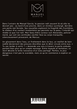 Dans l'univers de Manuel García, la passion naît souvent là où elle ne devrait pas : au bord d'une piscine, dans un minibus surchargé, derrière une porte mal fermée. Ses nouvelles explorent la fragilité des frontières, la chaleur d'un contact involontaire qui persiste sur la peau, l'interdit qui révèle ce que l'on tait. Mon beau-frère curieux suit Alexandre, policier marié, qui voit ses certitudes vaciller face au corps tranquille, silencieusement provocant, de Marcus. Un glissement dans l'eau, un frottement dans le bus, un maillot de bain oublié deviennent des preuves discrètes que le désir circule entre eux. « Tu vas tarder à sortir ? » demande une voix à travers la porte embuée, portant bien plus qu'un simple message. Entre loyauté et tentation, ce récit dévoile la lente naissance d'un aveu partagé. Parfois, le plus dangereux n'est pas le scandale, mais ce qu'on commence à espérer en secret.