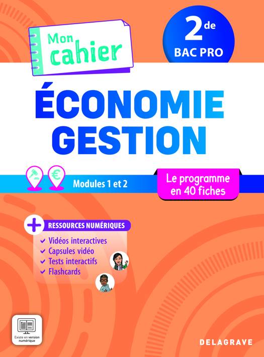 Le nouveau cahier TOUT-EN-UN pratique et facile (Fiches/Exercices/Cours/Méthodes/Révisions) qui révolutionne l'Économie-Gestion en 2de Bac Pro par son approche concrète à partir de situations réelles qui parlent aux élèves et une présentation très visuelle pour donner le goût d'apprendre.