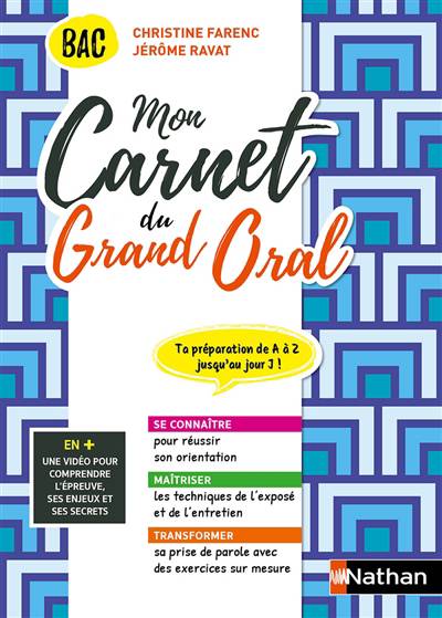 Un carnet pour préparer le grand oral du bac, avec un test pour évaluer son niveau initial à l'oral, un parcours d'entraînement personnalisé selon un planning défini et une vidéo de coaching en ligne.