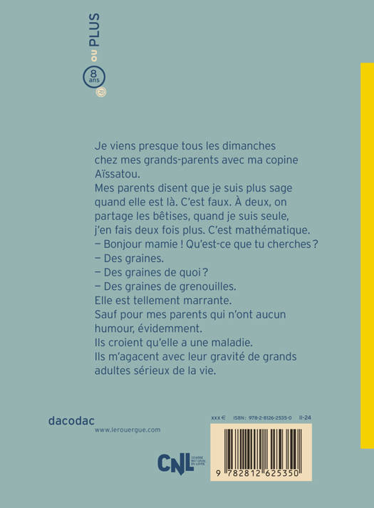 Pauline et sa grand-mère, c'est que de l'amour et de la tendresse. Comme un trait d'union entre la vieillesse et la jeunesse. Mais depuis quelques temps quand sa mamie dit des trucs marrants, personne ne rigole... Les parents disent que les médecins lui ont trouvé une maladie. Que c'est pour ça qu'elle confond les mots et oublie les choses et que c'est aussi pour ça que ce n'est pas drôle. Mais Pauline connaît la vérité vraie : sa mamie fait vraiment des blagues, c'est juste ses parents qui n'ont pas d'humour ! Avec délicatesse, humour et insolence, Myren Duval signe un nouveau roman qui parle de maladie, de déni, d'acceptation mais surtout d'amour (avec une quantité importante de blagues saupoudrées dessus). Par l'autrice de « Mon chien, Dieu et les Pokétrucs » (8 000ex).