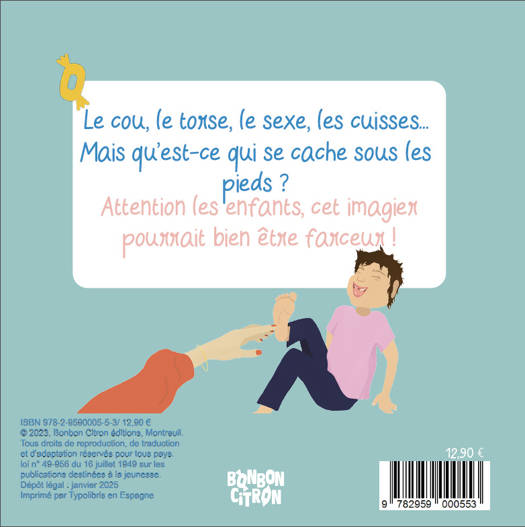 Le cou, le torse, le sexe, les cuisses... Mais qu’est-ce qui se cache sous les pieds ? Attention les enfants, cet imagier pourrait bien être farceur !