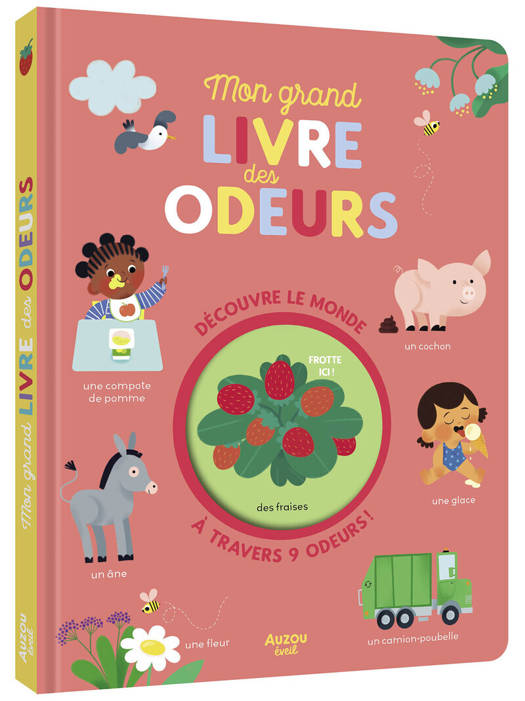 Dans ce beau livre, l'enfant part explorer le monde à travers 9 univers thématiques adaptés (la ferme, l'école, la cuisine, la mer...) et travaille son sens olfactif.