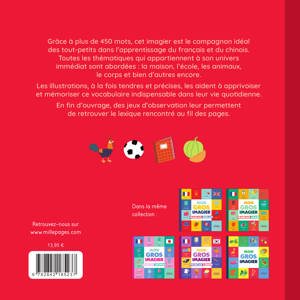 Un gros imagier de plus de 450 mots sur la vie quotidienne de l’enfant, en français et en chinois.