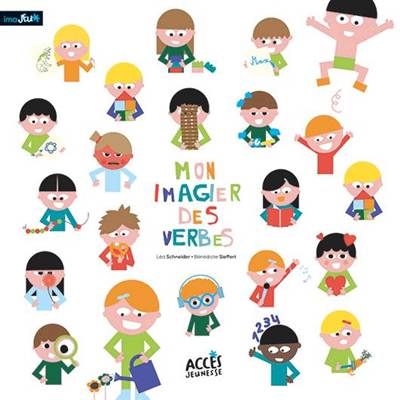 Sur chaque double page, des verbes illustrés regroupés par type d’activité.