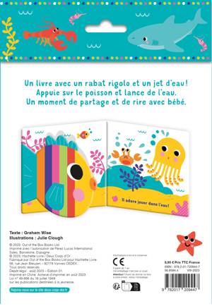 Un livre avec un rabat rigolo et un jet d’eau, adapté aux petites mains. Appuie sur le poisson et lance de l’eau. Un moment de partage et de rire avec bébé.