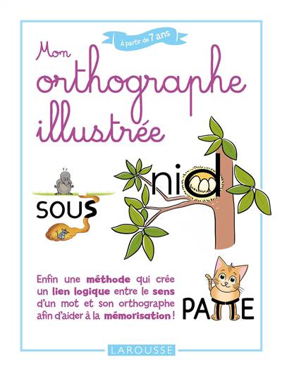 L’ouvrage propose 150 mots illustrés, pour mémoriser les particularités orthographiques : doubles consonnes, changement de graphème (n = m devant p et b, etc.), accentuation, homophones…