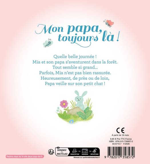 Quelle belle journée ! Mia et son papa s'aventurent dans la forêt. Tout semble si grand... Parfois, Mia n'est pas bien rassurée. Heureusement, de près ou de loin, Papa veille sur son petit chat !