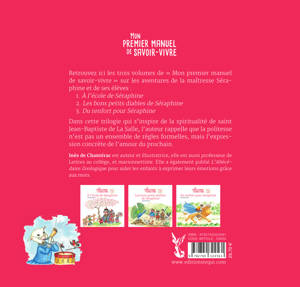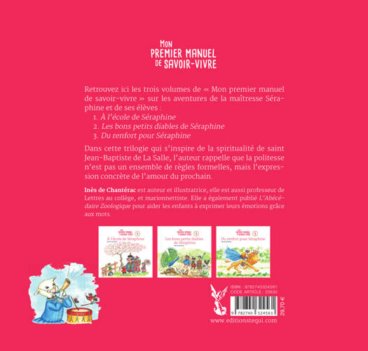 Ce pack regroupe les 3 volumes de la collection « Mon premier manuel de savoir-vivre » : À l’école de Séraphine, Les bons petits diables de Séraphine et Du renfort pour Séraphine