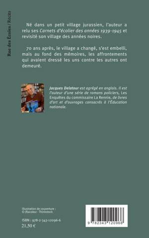 Né dans un petit village jurassien, l'auteur a relu ses carnets d'écolier des années 1939-1945 et revisité son village des années noires. 70 ans après, le village a changé, s'est embelli, mais au fond des mémoires, les affrontements qui avaient dressé les uns contre les autres ont demeuré.