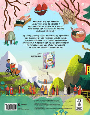 Rejoignez le jeune explorateur Yuki dans un voyage passionnant à travers les paysages variés et les cultures dynamiques de l‘Asie et du Moyen-Orient. Découvrez des anecdotes amusantes, sur les dragons de l‘île de Komodo par exemple ou encore l‘ingrédient secret utilisé dans la construction de la Grande Muraille de Chine. 27 endroits incroyables à découvrir en Chine, en Thaïlande, au Laos, en Indonésie, aux Philippines, au Japon, en Inde, au Cambodge, ou encore en Jordanie, au Vietnam, en Turquie, et aux Emirats arabes unis. Riche en illustrations et en anecdotes captivantes, ce carnet de voyage illustré est idéal pour les enfants de 9 ans et plus. Il les incite à rêver à ces lieux incroyables et fait de l‘apprentissage de la géographie une expérience passionnante. Les multiples endroits visités permettent de voir la diversité de cultures, de paysages et d'activités des différents pays.