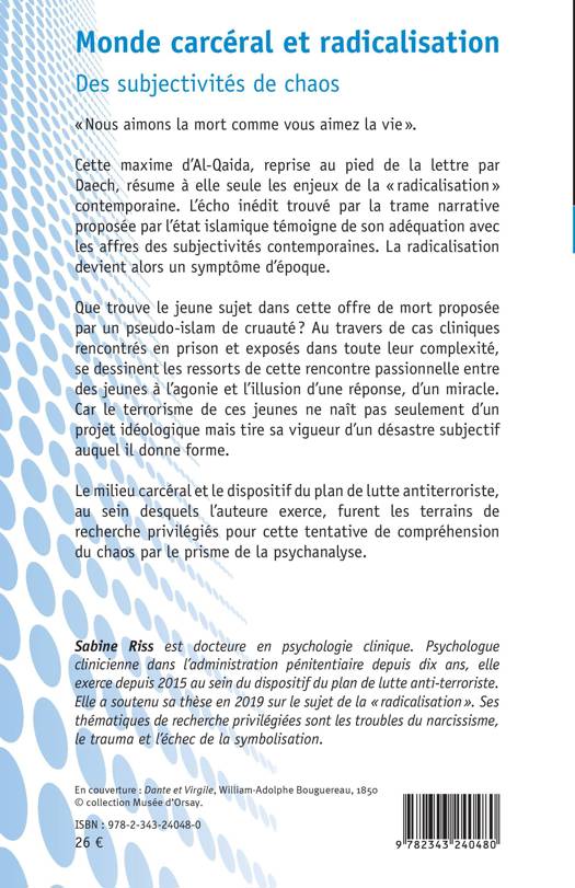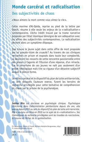 Nous aimons la mort comme vous aimez la vie Cette maxime d'Al-Qaida, reprise au pied de la lettre par Daech, résume à elle seule les enjeux de la radicalisation contemporaine. Au travers de cas cliniques rencontrés en prison, se dessinent les ressorts de cette rencontre passionnelle entre des jeunes à l'agonie et l'illusion d'une réponse, d'un miracle. Car le terrorisme de ces jeunes ne naît pas seulement d'un projet idéologique mais tire sa vigueur d'un désastre subjectif auquel il donne forme. Le milieu carcéral et le dispositif du plan de lutte antiterroriste, au sein desquels l'auteure exerce, furent les terrains de recherche privilégiés pour cette tentative de compréhension du chaos par le prisme de la psychanalyse.