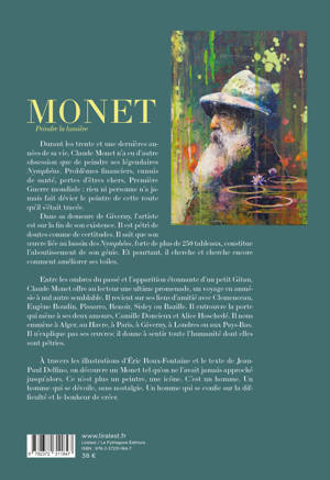 Durant les 30 dernières années de sa vie, Claude Monet n'a eu d'autre obsession que de peindre ses légendaires nymphéas. À travers les illustrations de Éric Roux-Fontaine et le texte de Jean-Paul Delfino, on découvre un Monet tel qu'on ne l'avait jamais approché jusqu'alors. C'est un homme qui se confie sur la difficulté et le bonheur de créer