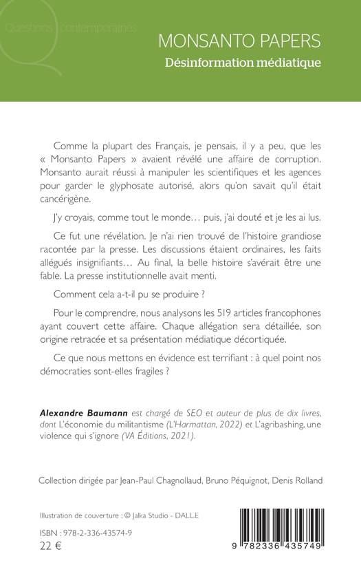 Comme la plupart des Français, je pensais, il y a peu, que les « Monsanto Papers » avaient révélé une affaire de corruption. Monsanto aurait réussi à manipuler les scientifiques et les agences pour garder le glyphosate autorisé, alors qu’on savait qu’il était cancérigène. J’y croyais, comme tout le monde… puis, j’ai douté et je les ai lus. Ce fut une révélation. Je n’ai rien trouvé de l’histoire grandiose racontée par la presse. Les discussions étaient ordinaires, les faits allégués insignifiants… Au final, la belle histoire s’avérait être une fable. La presse institutionnelle avait menti. Comment cela a-t-il pu se produire ? Pour le comprendre, nous analysons les 519 articles francophones ayant couvert cette affaire. Chaque allégation sera détaillée, son origine retracée et sa présentation médiatique décortiquée. Ce que nous mettons en évidence est terrifiant : à quel point nos démocraties sont-elles fragiles ?
