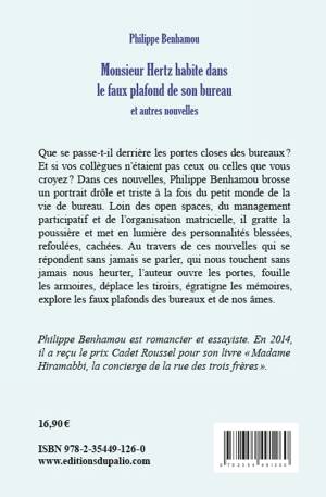 Que se passe-t-il derrière les portes closes des bureaux ?Et si vos collègues n’étaient pas ceux ou celles que vous croyez ? Dans ces nouvelles, Philippe Benhamou brosse un portrait drôle et triste à la fois du petit monde de la vie de bureau. Loin des open spaces, du management participatif et de l’organisation matricielle, il gratte la poussière et met en lumière des personnalités blessées, refoulées, cachées. Au travers de ces nouvelles qui se répondent sans jamais se parler, qui nous touchent sans jamais nous heurter, l’auteur ouvre les portes, fouille les armoires, déplace les tiroirs, égratigne les mémoires, explore les faux plafonds des bureaux et de nos âmes.Philippe Benhamou est romancier et essayiste. En 2014, il a reçu le prix Cadet Roussel pour son livre « Madame Hiramabbi, la concierge de la rue des trois frères ».