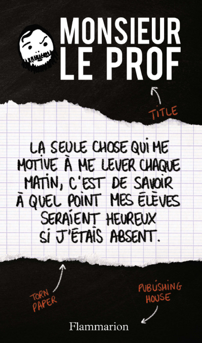 1 année scolaire 6 classes 170 élèves 4 boucs émissaires 18 heures de cours par semaine 2 500 copies à corriger 510 bulletins à remplir 18 conseils de classe pour roupiller 283 verbes irréguliers 50 heures de colle à distribuer 16 semaines de vacances 1 Enzo 3 dépressions 0 mutation acceptée. Monsieur le Prof enseigne l'anglais depuis plusieurs années en banlieue parisienne. Prof le plus populaire du Web, il est suivi par plusieurs centaines de milliers de personnes et nous livre ici le contenu de son agenda.
