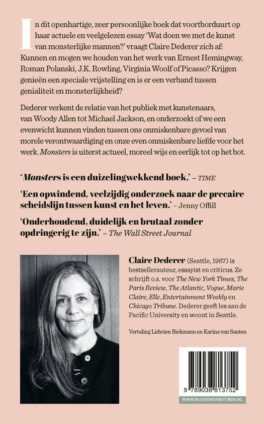 In dit openhartige, zeer persoonlijke boek dat voortborduurt op haar actuele en veelgelezen essay ‘Wat doen we met de kunst van monsterlijke mannen?’ vraagt Claire Dederer zich af: Kunnen en mogen we houden van het werk van Ernest Hemingway, Roman Polanski, J.K. Rowling, Virginia Woolf of Picasso? Krijgen genieën een speciale vrijstelling en is er een verband tussen genialiteit en monsterlijkheid?