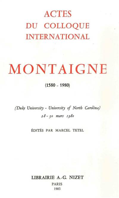 Ces Actes du colloque international marquant les 400 ans de la première édition des Essais de Montaigne, regroupent une dizaine d'interventions, très variées, sur cet inclassable chef-d'œuvre de la littérature française