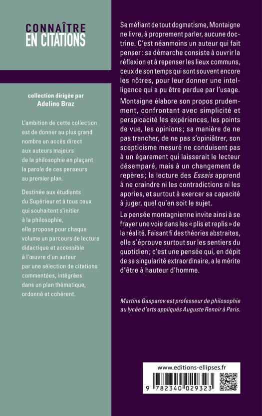 Se méfiant de tout dogmatisme, Montaigne ne livre, à proprement parler, aucune doctrine. C’est néanmoins un auteur qui fait penser : sa démarche consiste à ouvrir la réflexion et à repenser les lieux communs, ceux de son temps qui sont souvent encore les nôtres, pour leur donner une intelligence qui a pu être perdue par l’usage.